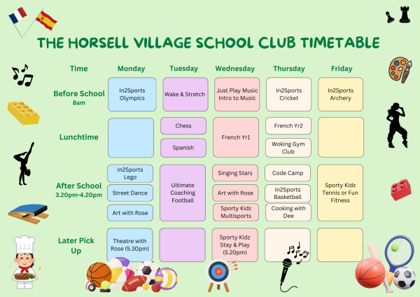At The Horsell Village School we believe that learning extends beyond the classroom. Our diverse range of extra-curricular clubs offers children the opportunity to explore new interests, develop essential life skills, and build friendships. Whether your child is interested in sports, arts, music, or languages, there is something for everyone to enjoy.